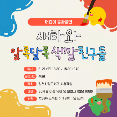 어린이 뮤지컬 <새하와 알록달록 색깔친구들> 관람 신청...