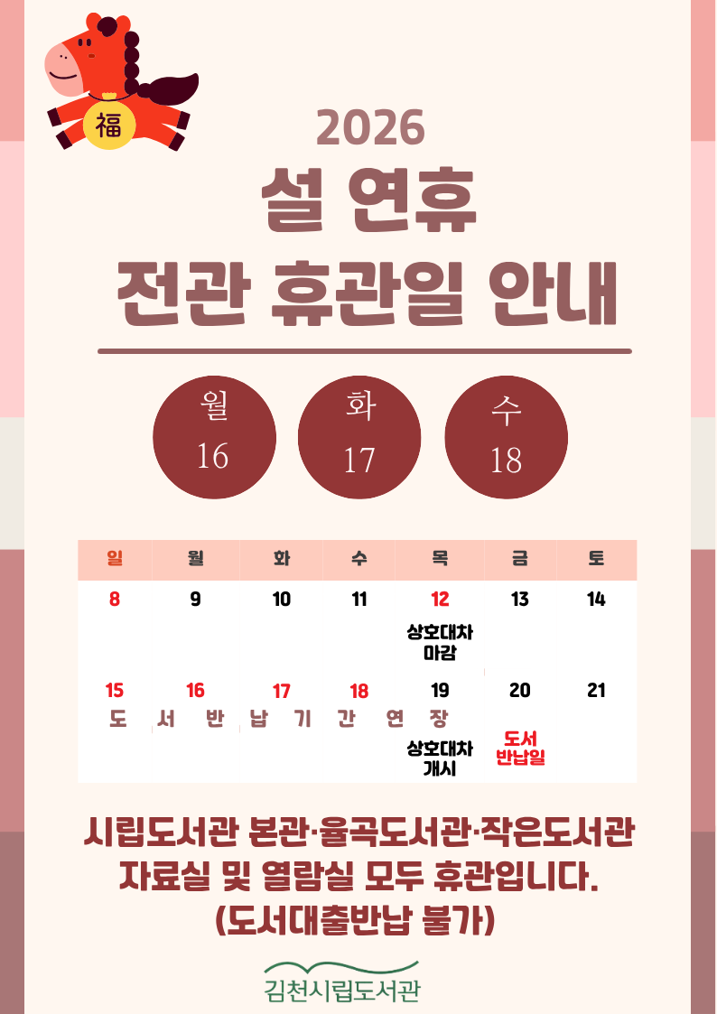 설 연휴 휴관 안내(본관, 율곡, 작은도서관)...