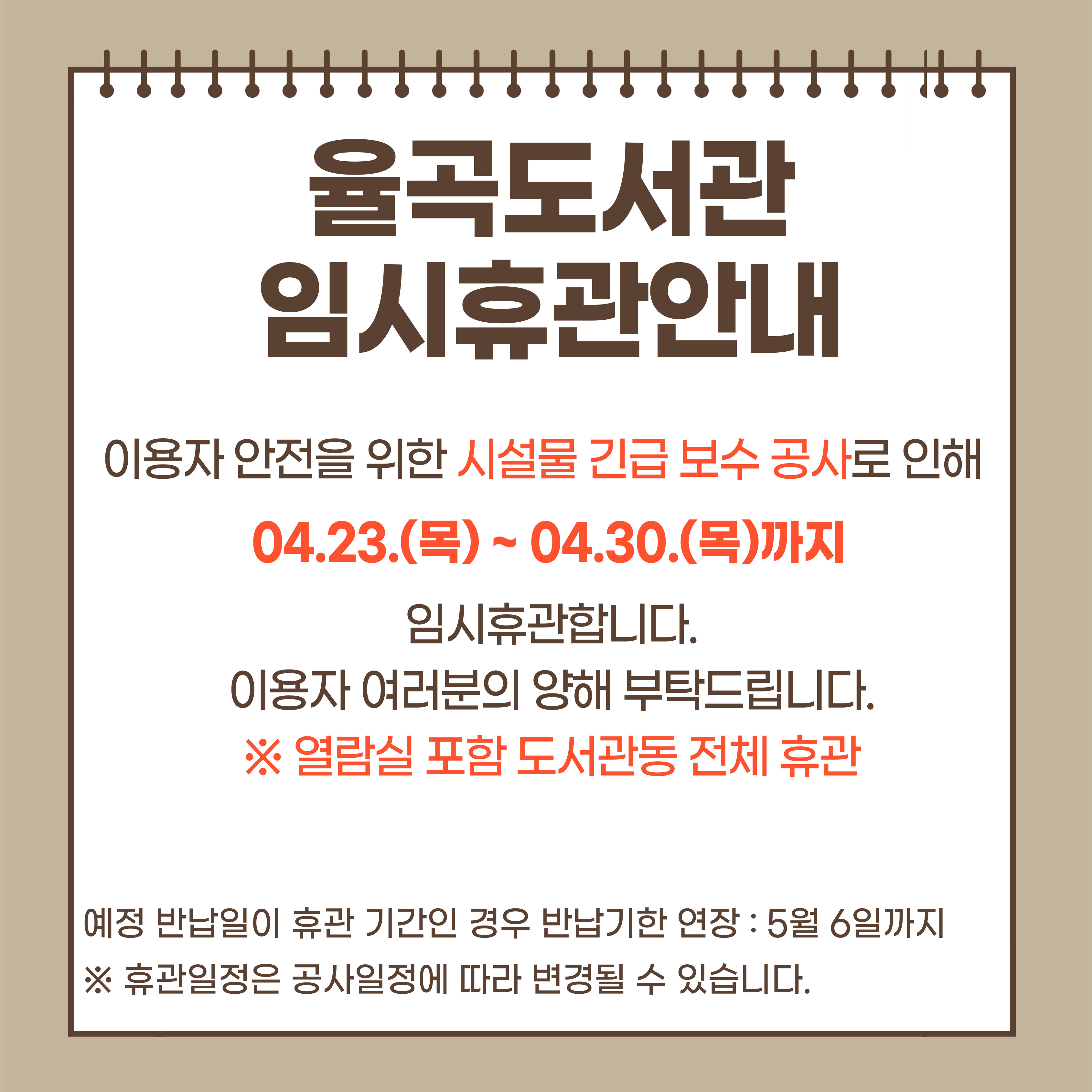 2026. 5. 1. 노동절(근로자의 날) 휴관 안내